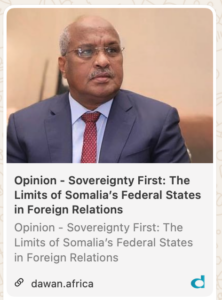 Comment on Avv. Omar Abdulle โDhagey,โ Opinion on โSovereignty First: The Limits of Somaliaโs Federal States in Foreign Relations,โ Dawan Africa, 14 January 2026