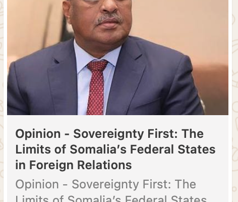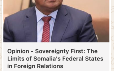 Avv. Omar Abdulleโs opinion piece asserts, with confidence, that Somaliaโs Federal Government (FGS) enjoys exclusive and unqualified authority over foreign relations, while Federal Member States (FMS) possess no constitutional or legal role whatsoever in engagements with foreign governments. While this position may appear traditional in stable and consolidated federations, it collapses under closer scrutiny when…